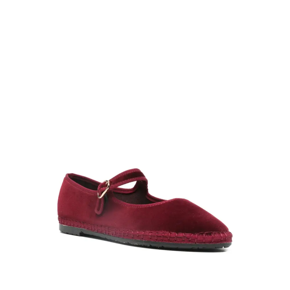 бордовые туфли с одной пряжкой, миндалевидным носком и плоской подошвой