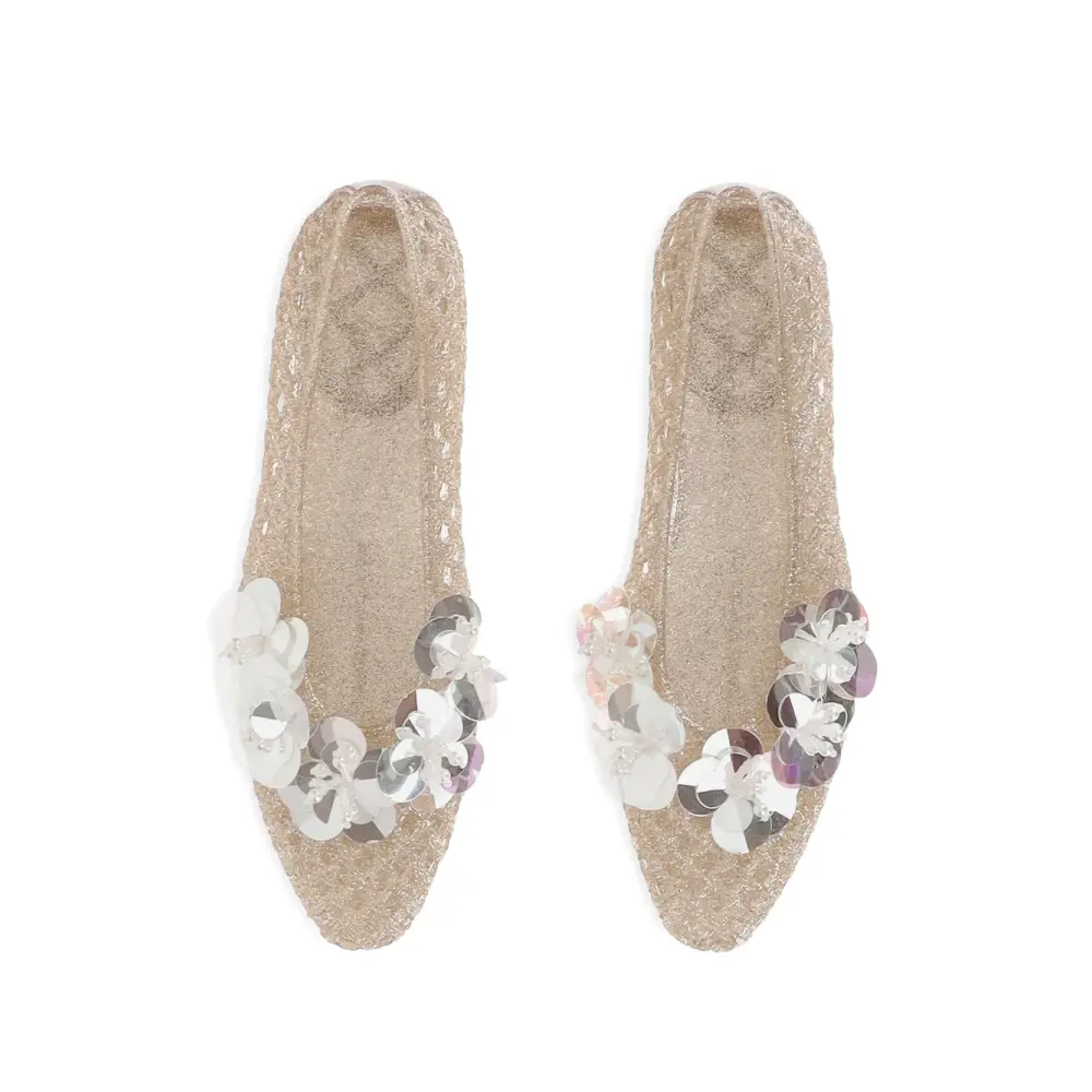 бежевые украшения из пайеток, сетчатый дизайн, миндалевидный носок, плоская подошва