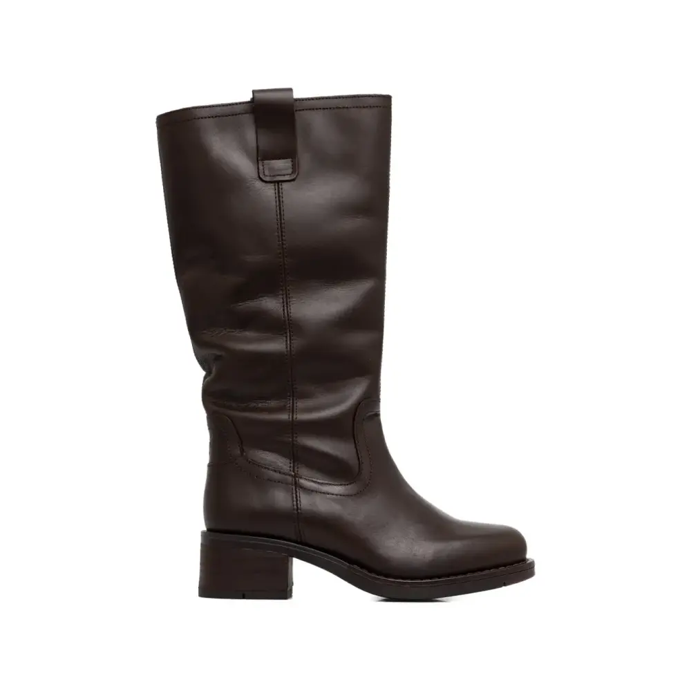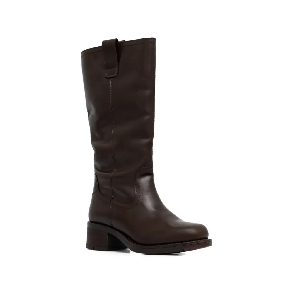 темно-коричневые ботинки без застежки на блочном каблуке с тональной прострочкой