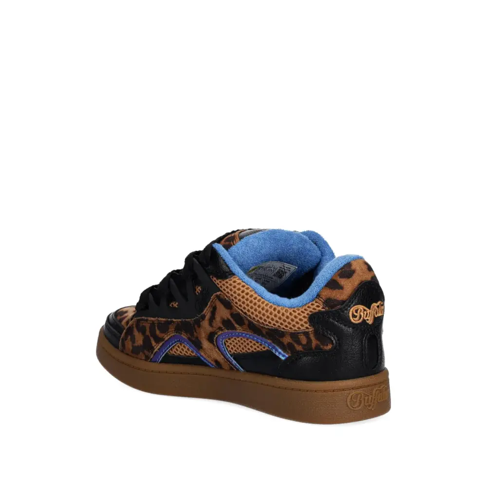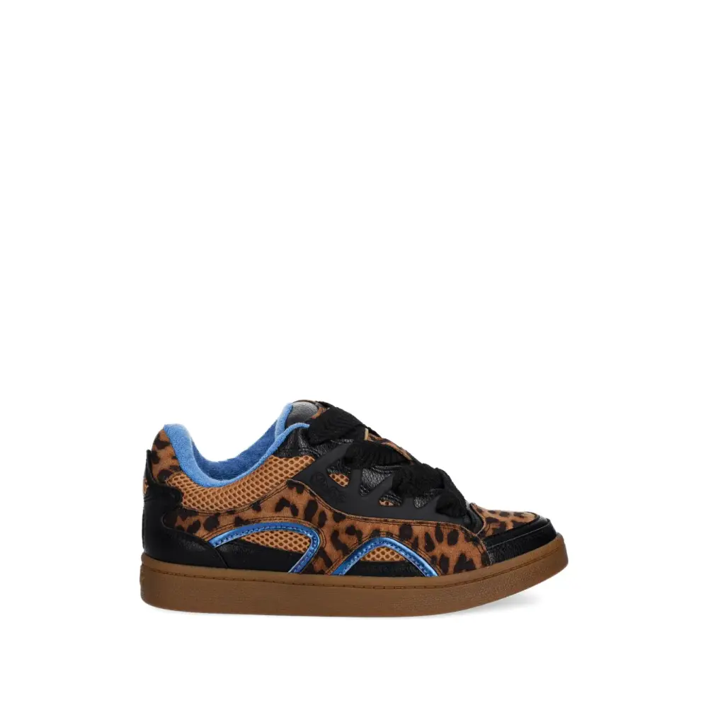 коричневый и разноцветный леопардовый принт, шнуровка, отделка с логотипом бренда, контрастная подошва, вставки из сетчатого материала