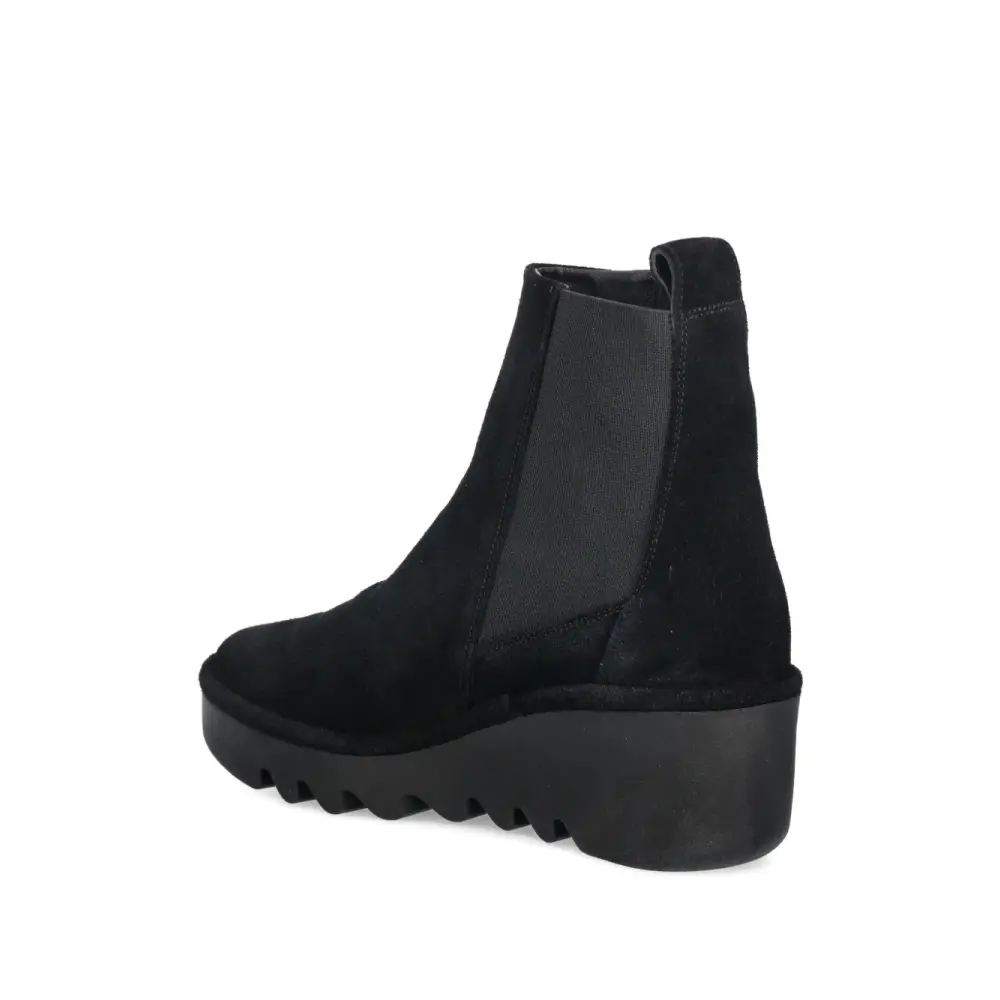 верх из чёрной замши, эластичные боковые вставки, петля на заднике, протекторная подошва