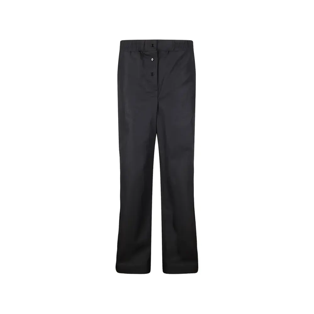 чёрные прямые брюки с эластичным поясом и застёжкой на пуговицу