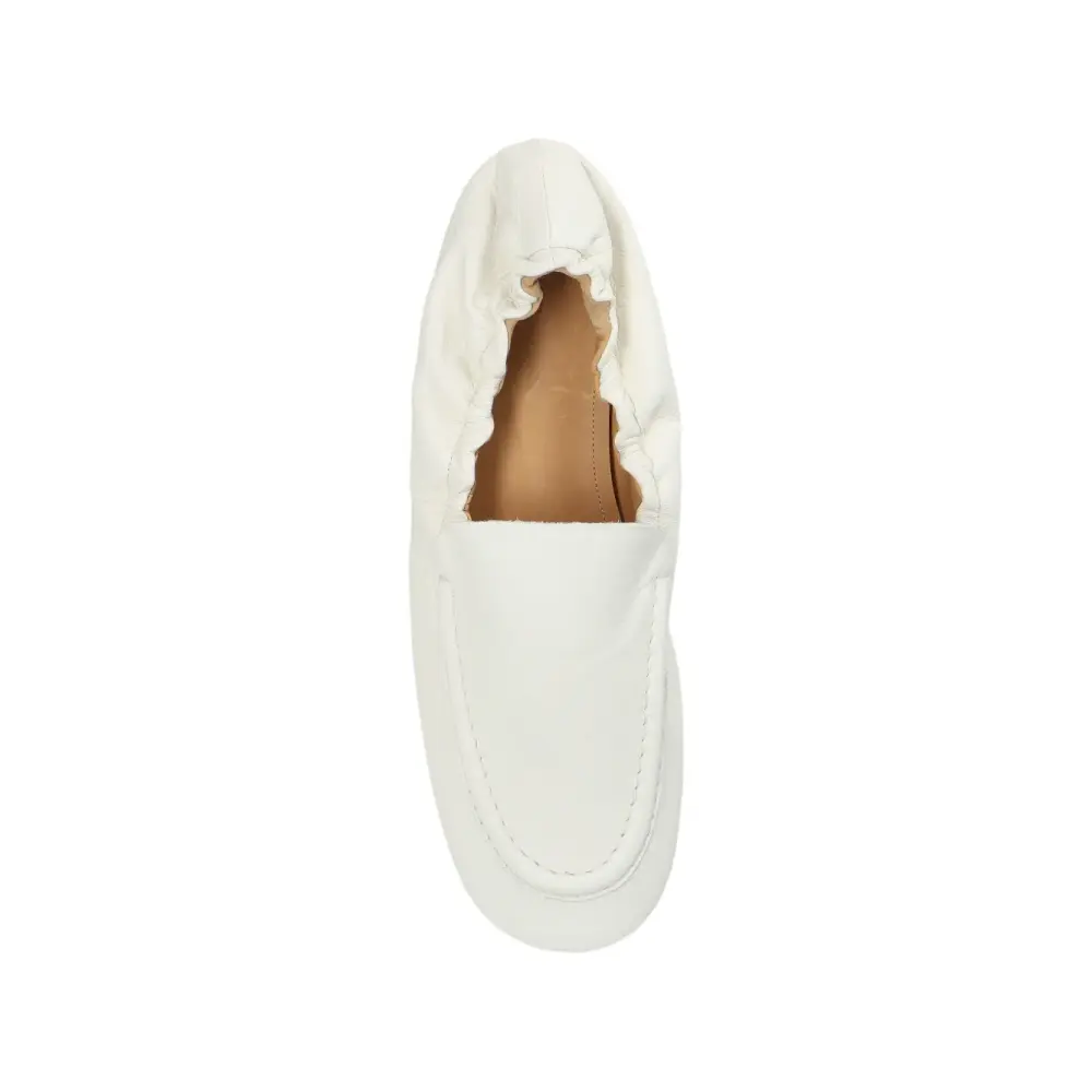 белые с мокасинной строчкой, в стиле слипонов, с эластичной лентой, на плоской подошве