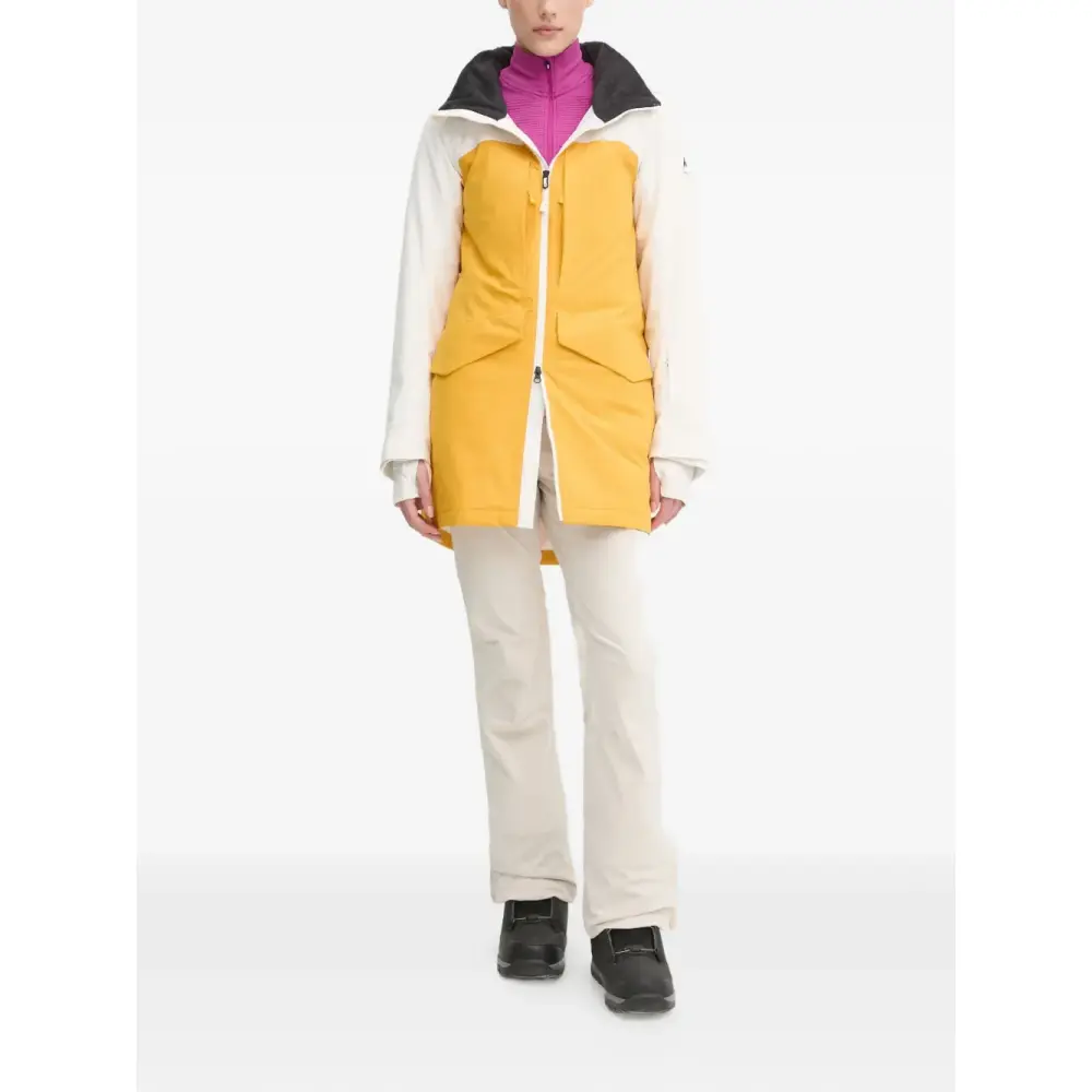 желтая толстовка с капюшоном, застежкой-молнией, нагрудными карманами, нашивкой-логотипом и длинными рукавами