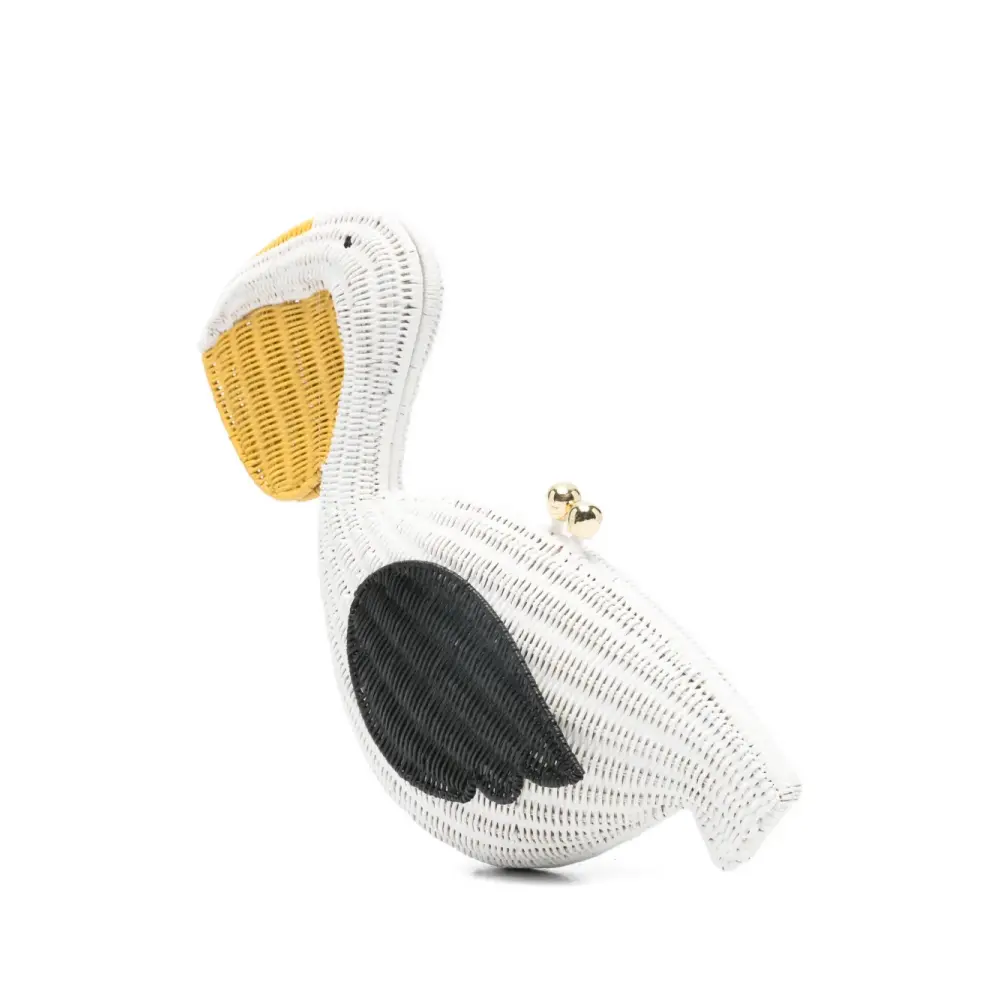 белый/многоцветный, плетёная структура, фурнитура цвета золота, съемный цепочный ремешок, форма пеликана, застёжка-замок сверху