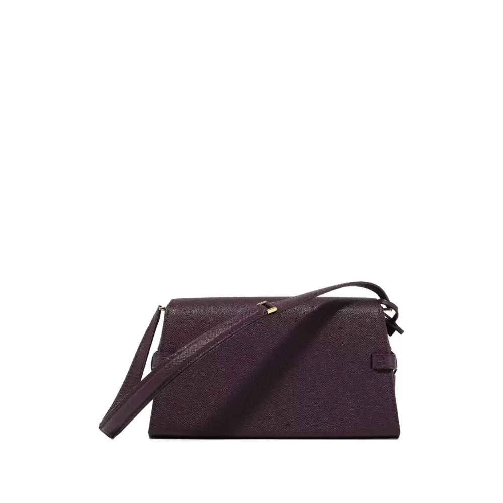 фиолетовая фактурная кожа, откидной клапан, фурнитура золотистого цвета