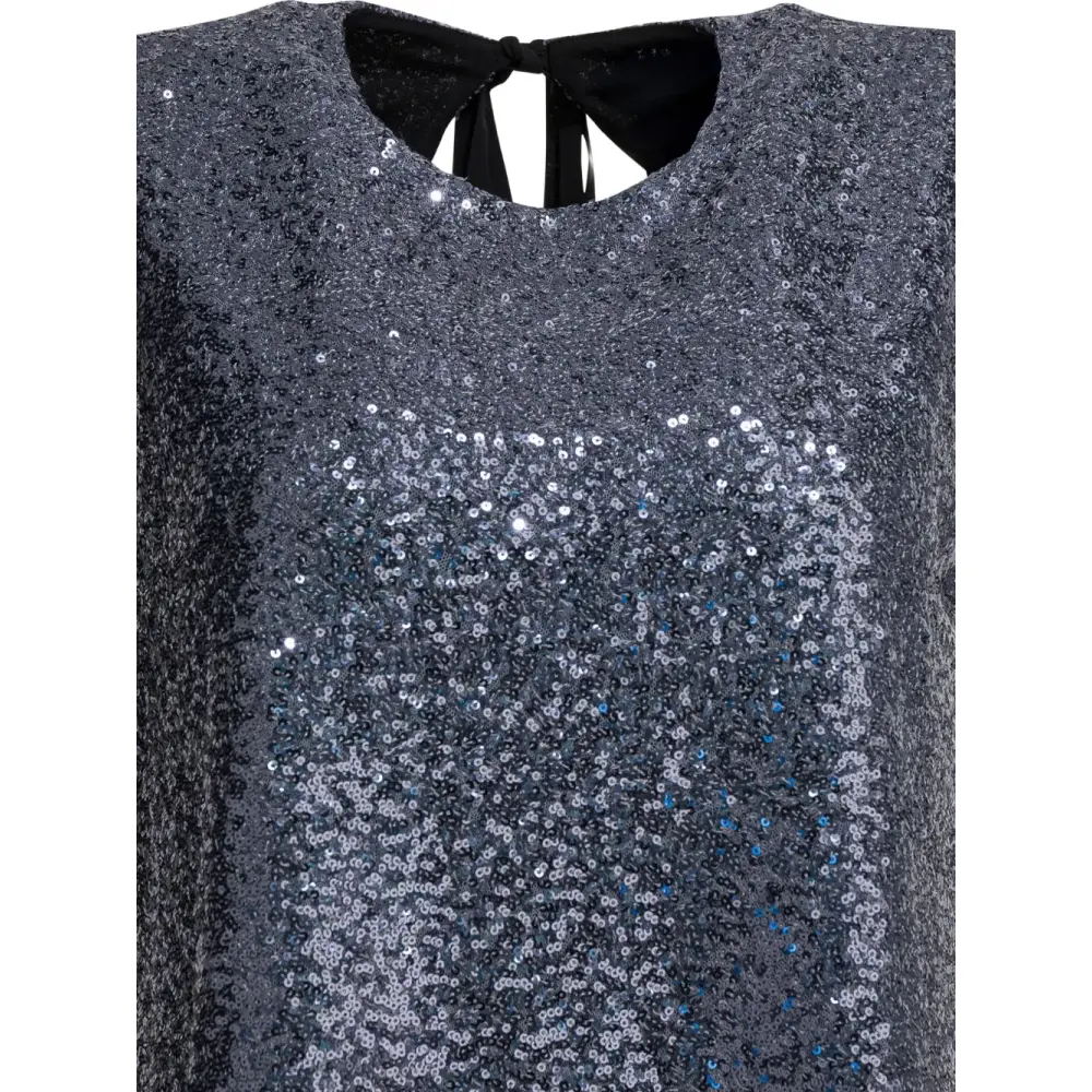 серое платье без рукавов с украшением из пайеток, завязками и открытой спиной
