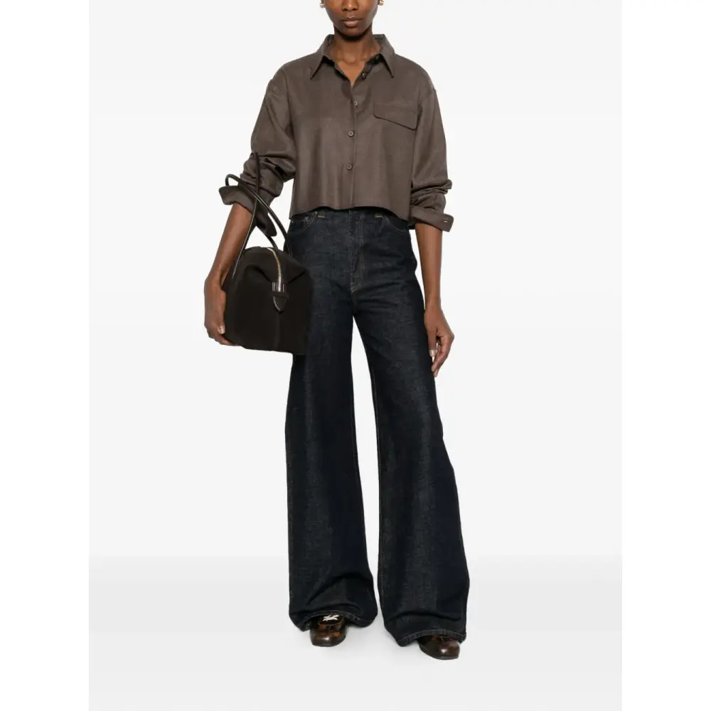 коричневый цвет, нагрудный карман, застежка на пуговицы, длинные рукава, укороченный фасон, отложной воротник