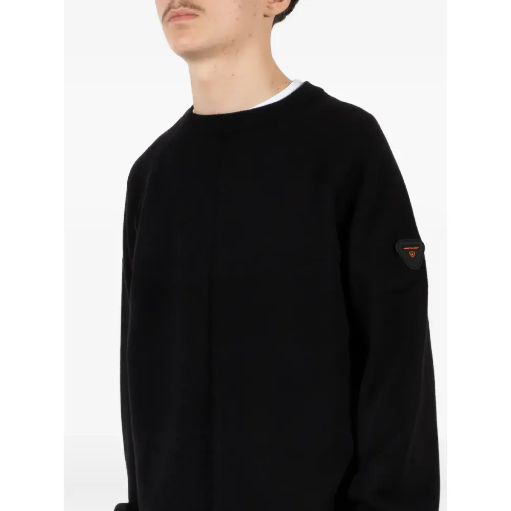 чёрная толстовка с рукавами-реглан, круглым вырезом и нашивкой с логотипом