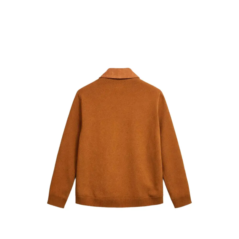 коричневые замшевые вставки, застежка на молнию, отложной воротник, ребристый низ и манжеты
