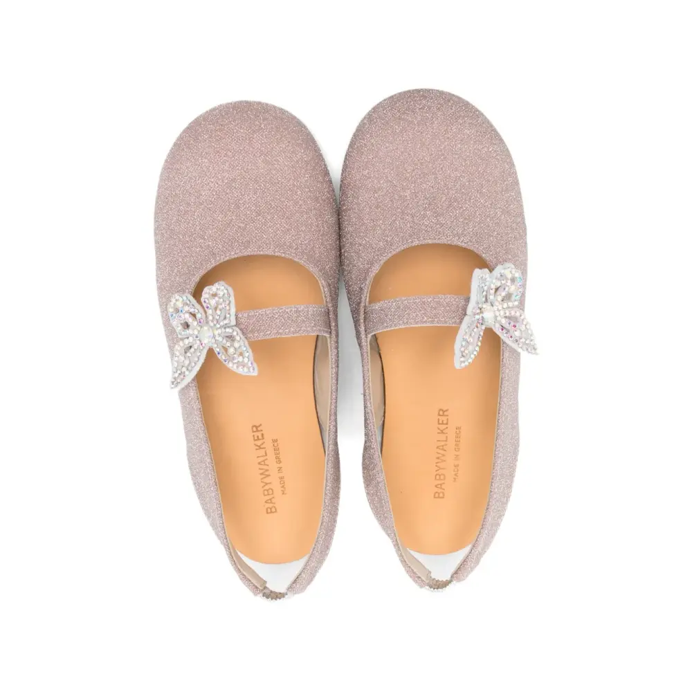 Пыльно-розовые туфли с закрытым носком, ремешком на пятке и деталями в виде бабочки