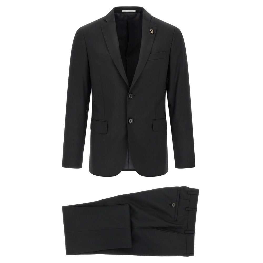 Платье 'Lord' из шерсти, состоящее из однобортного пиджака с застежкой на пуговицы спереди, лацканами с зеркальным эффектом и съемной металлической брошью, нагрудным карманом, карманами с клапанами, подкладкой из купро, двумя внутренними карманами, структурированным наплечником, манжетами с рабочими петлями, задними разрезами и брюк с заутюженными стрелками, передними "американскими" карманами, задними прорезными карманами, застежкой на молнию и пуговицу спереди, подкладкой из вискозы.