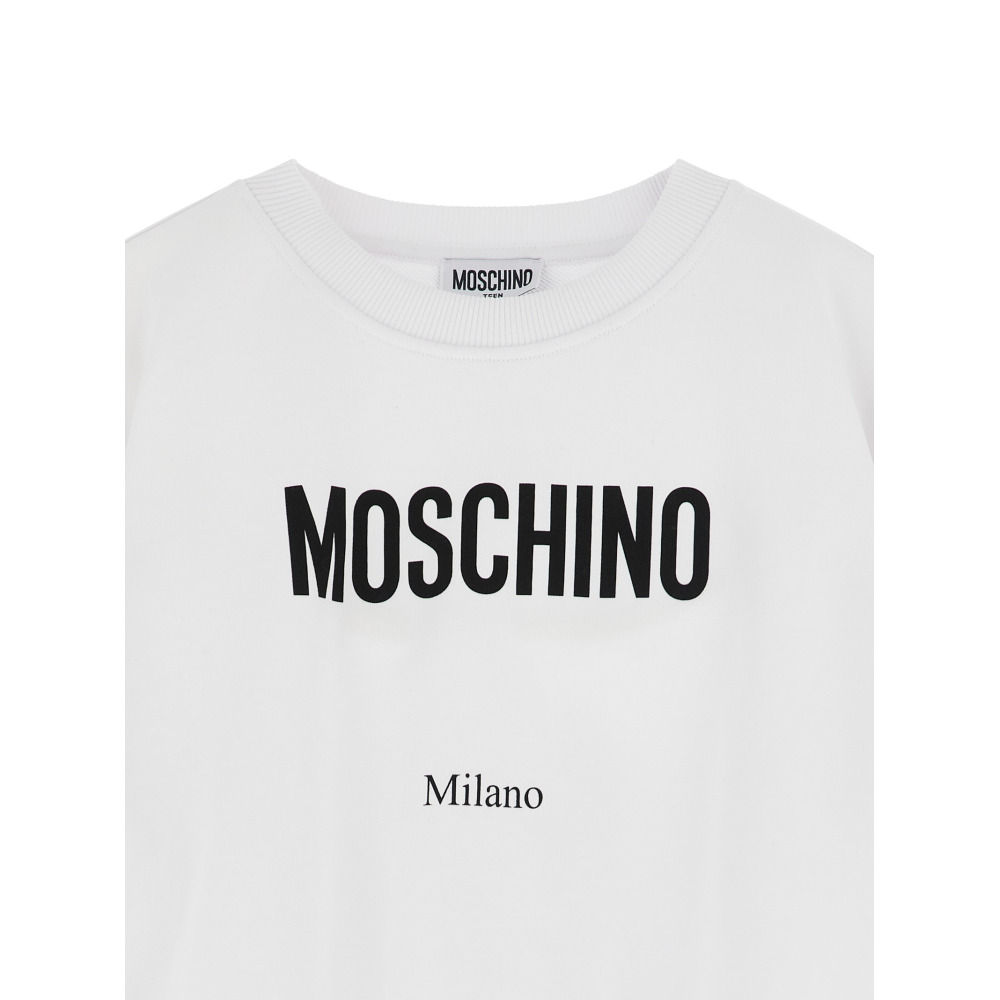 Свитшот из начёсанного хлопка, контрастный принт с логотипом на груди, круглый вырез, длинные рукава на манжетах.