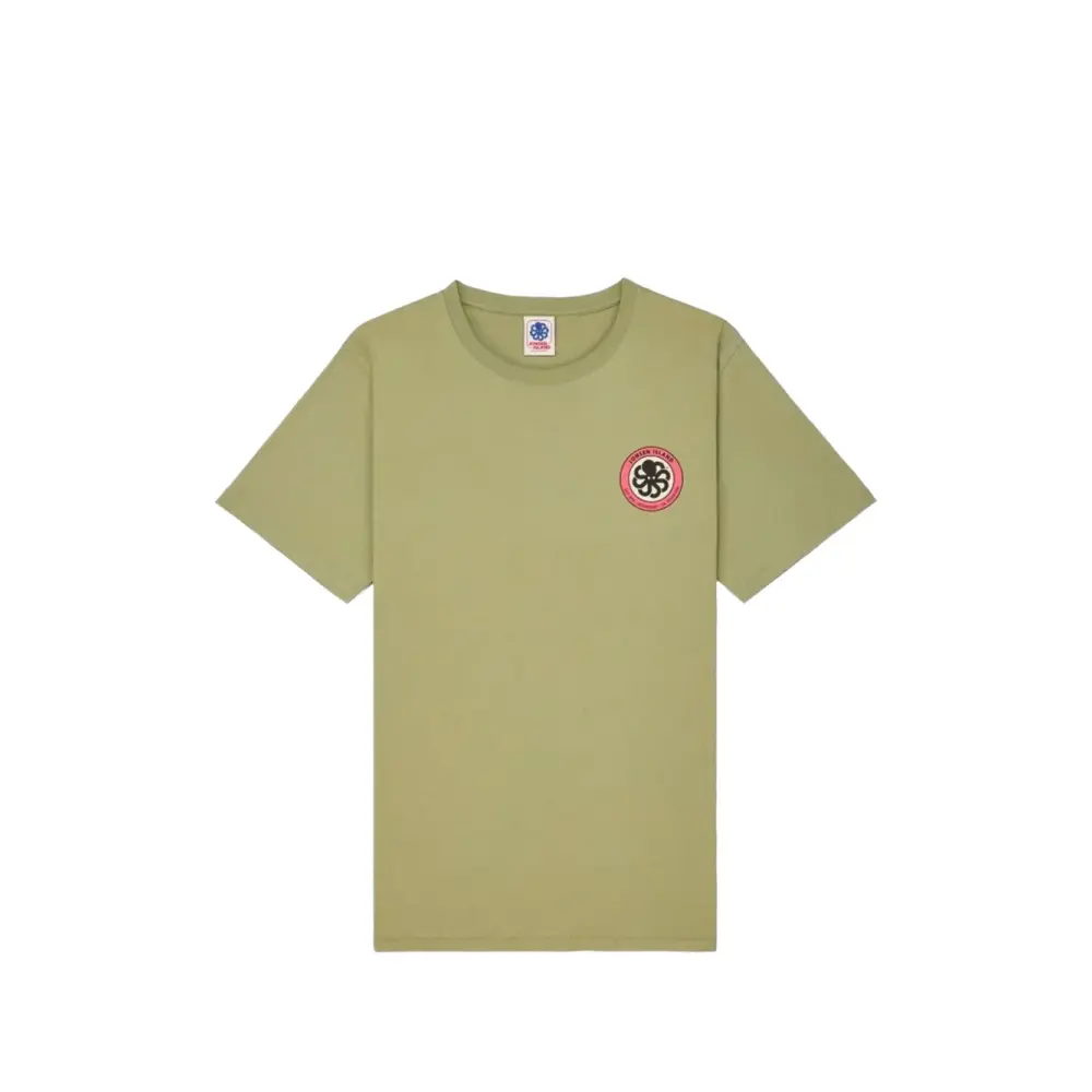 зелёная хлопковая футболка с круглым вырезом, короткими рукавами и графическим принтом