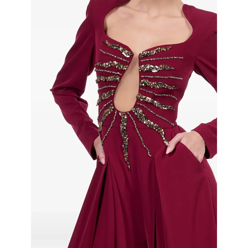 бордовый, украшения, длинные рукава, плиссированный