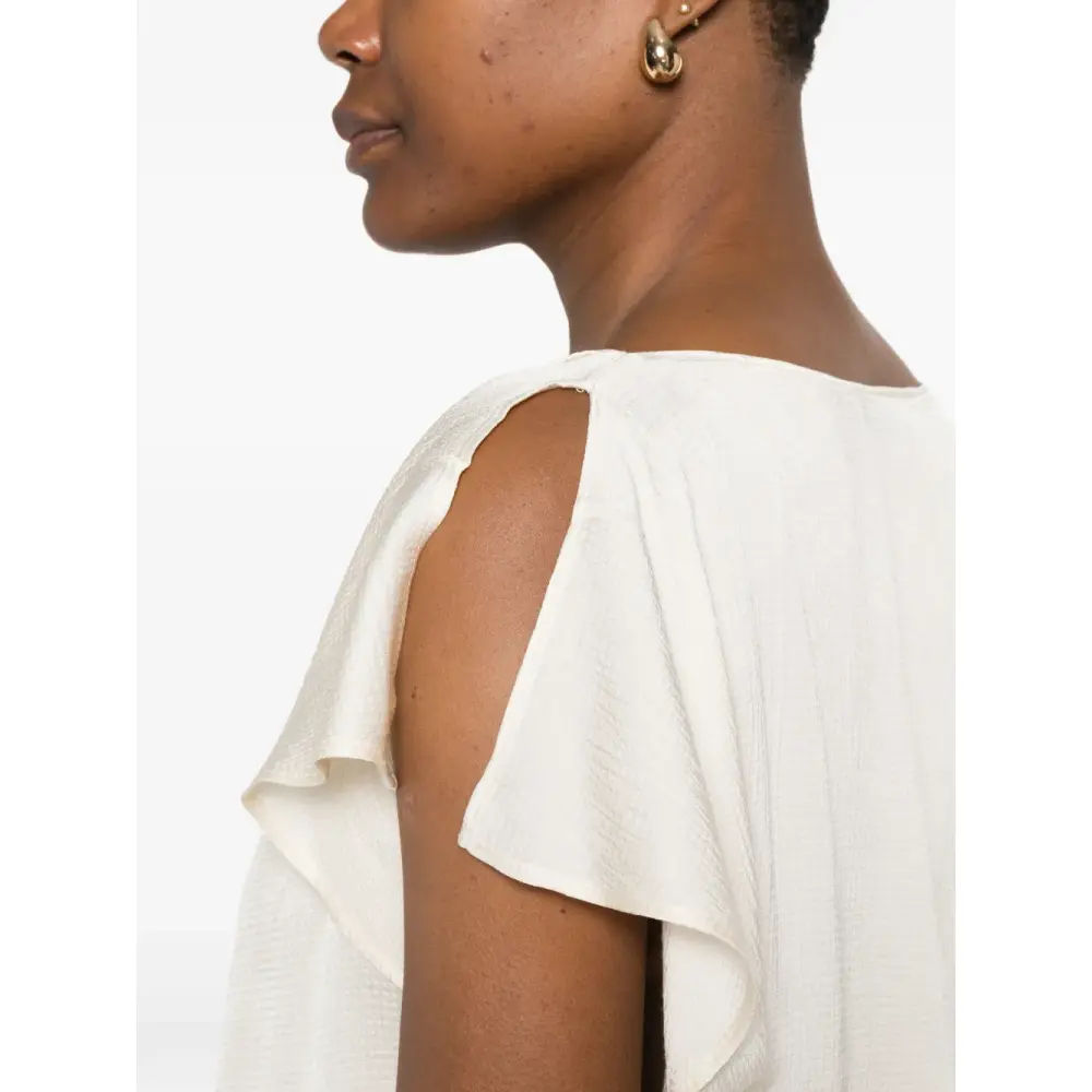 жемчужно-бежевый топ с завязками, короткими рукавами и тональной строчкой