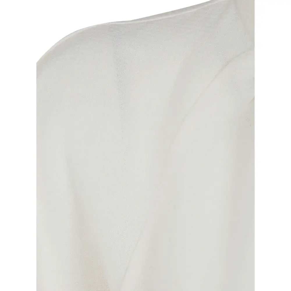экрю, круглый вырез с завязкой, короткие пышные рукава, манжеты на пуговицах