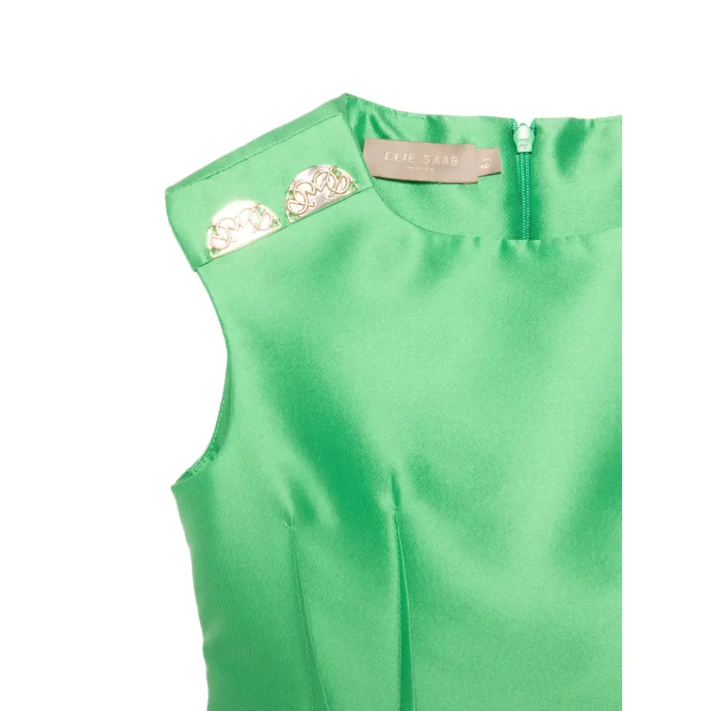 зелёное платье А-силуэта без рукавов с аппликацией, круглый вырез, застёжка-молния