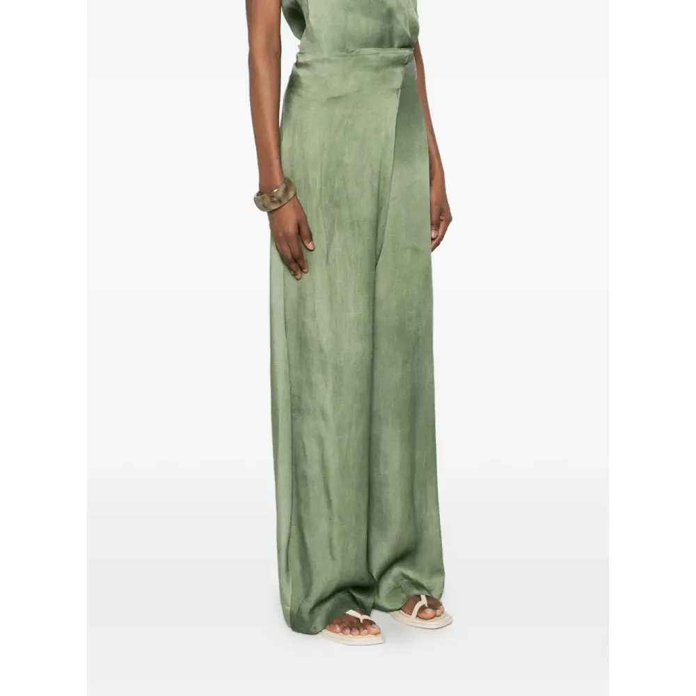 зеленые укороченные широкие брюки с завязками, запахом и высокой талией