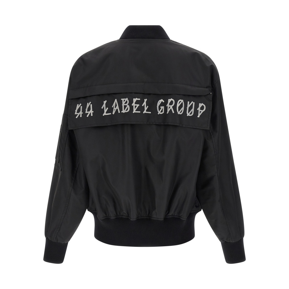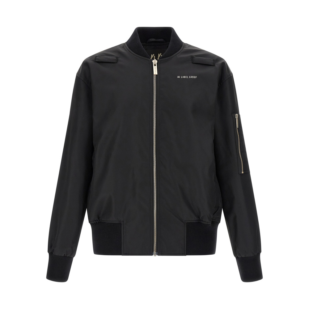 Бомбер 'Outer' из технической ткани с сатиновым эффектом, с деталями из эластичного ребристого трикотажа, с принтом-логотипом и застежкой на молнию спереди, со светоотражающим принтом на спине, высоким воротником, карманами, длинными рукавами с манжетами и спущенным плечом, а также с широкой резинкой по низу.
