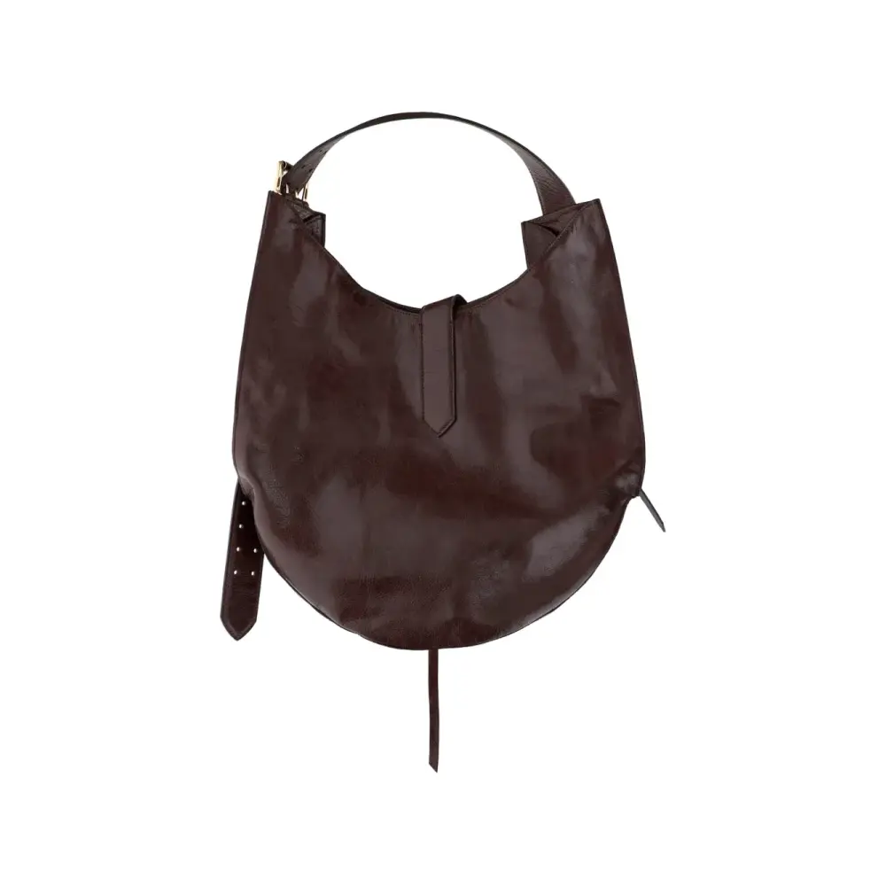 коричневый кожаный регулируемый плечевой ремень, фурнитура цвета золота, отделка в виде кисточки, застежка-пряжка
