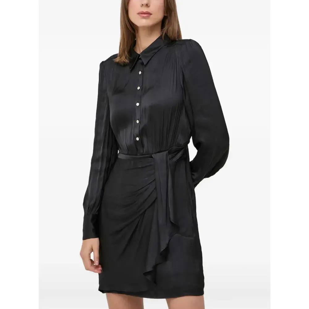 черная рубашка с завязкой, застежкой на пуговицы, длинными рукавами, сборками и отложным воротником