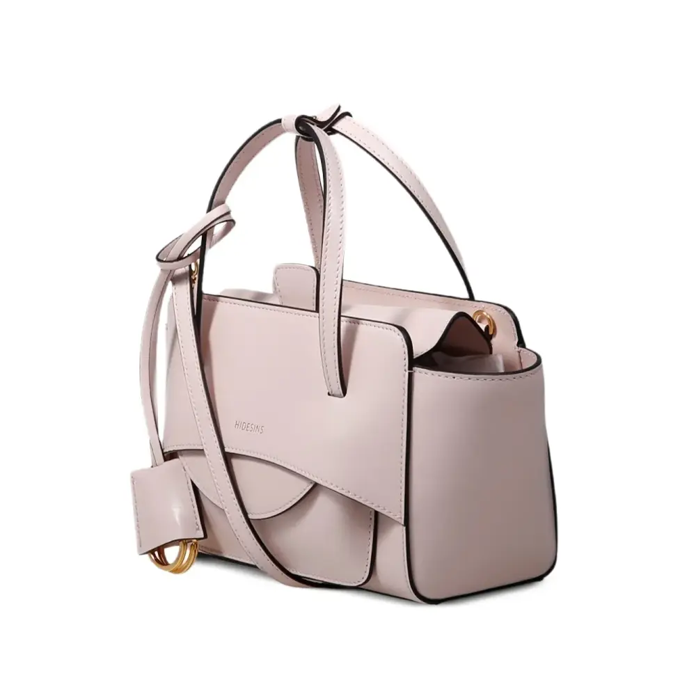 розовая сумка с верхней ручкой, съемным ремнём, фурнитурой золотистого цвета, накладным карманом и клапаном