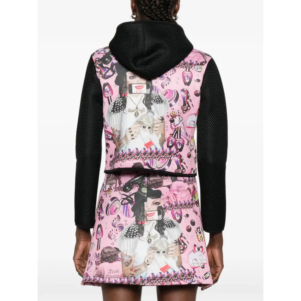 розовая и черная худи с принтом, длинными рукавами и застежкой-молнией