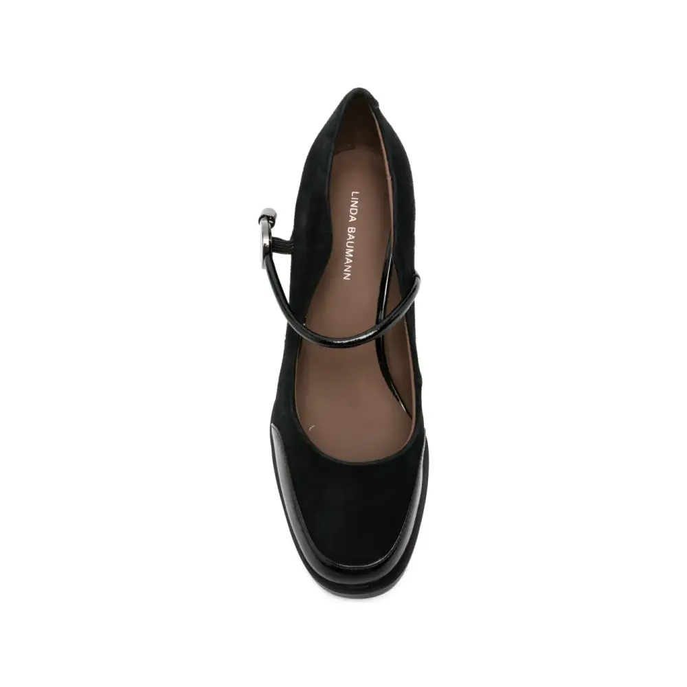 чёрные туфли Мэри Джейн на массивном каблуке с логотипом