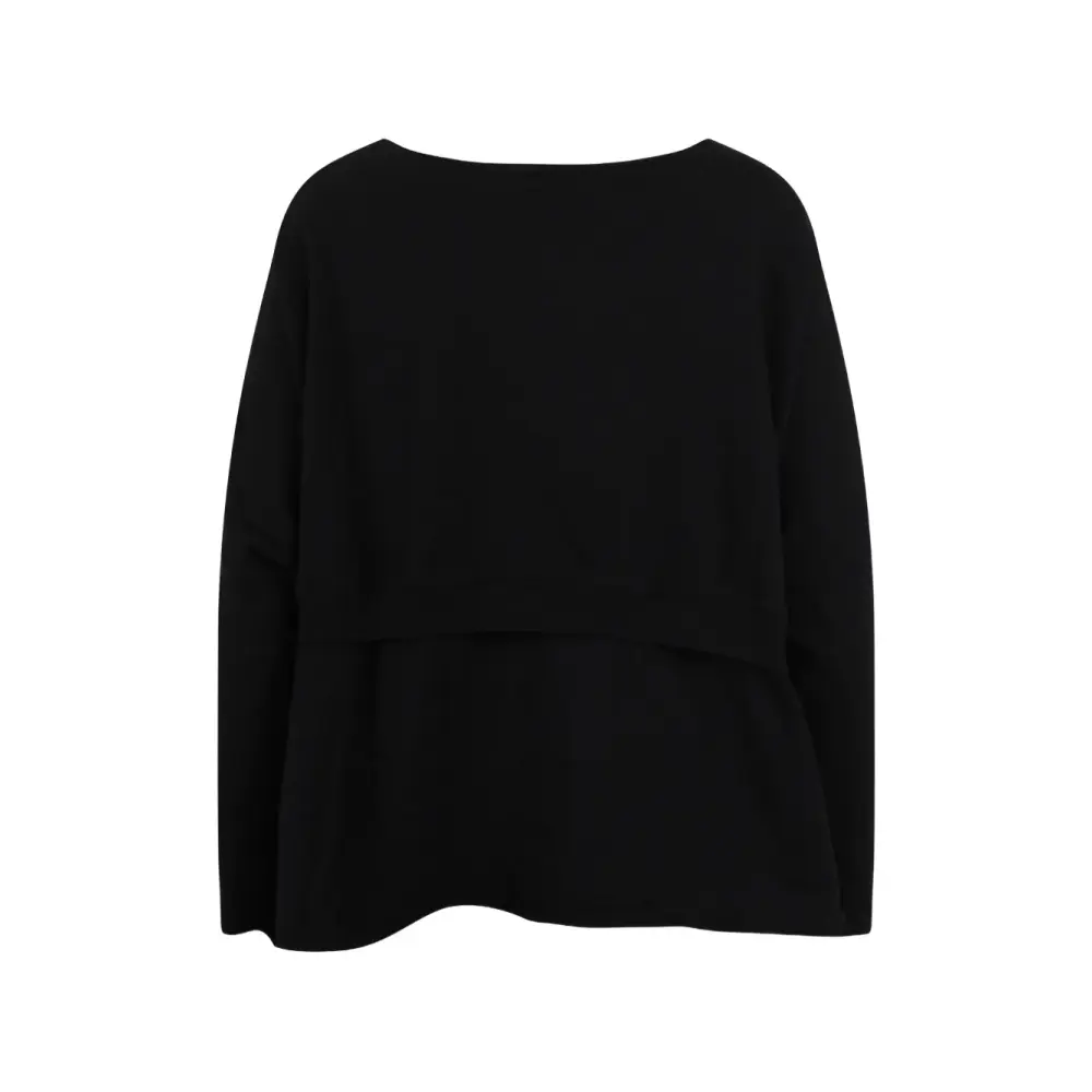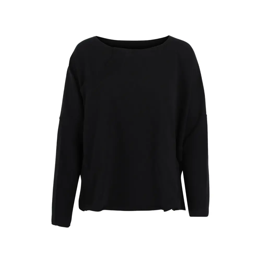 черный топ с вырезом-лодочка, длинными рукавами и деталями на спине