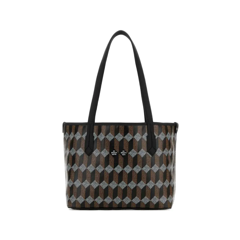 черная и коричневая монограмная сумка с верхней ручкой и принтом логотипа