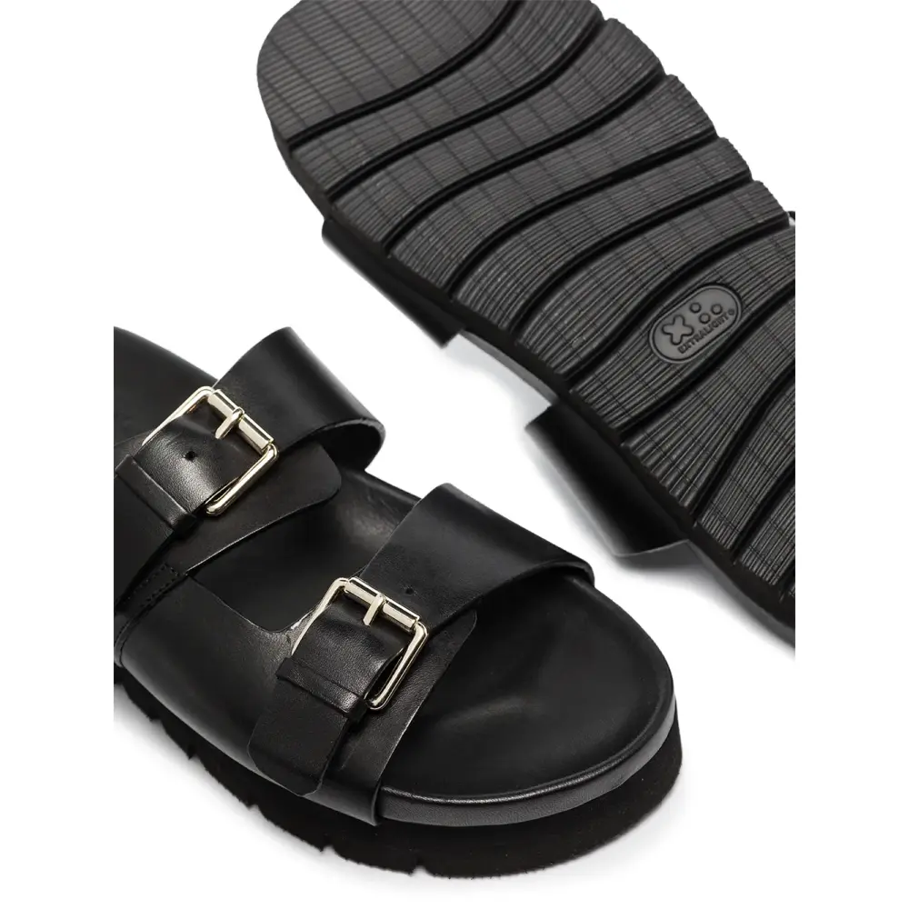 черный кожа стелька с логотипом открытый носок застежка на пряжке и ремешке модель без застежки формованная стелька